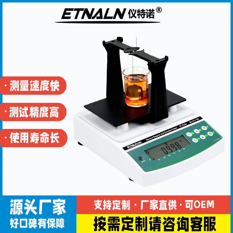 1、將盛有樣品的測(cè)量杯放在測(cè)量放置板上,扣除掛鉤的重量;