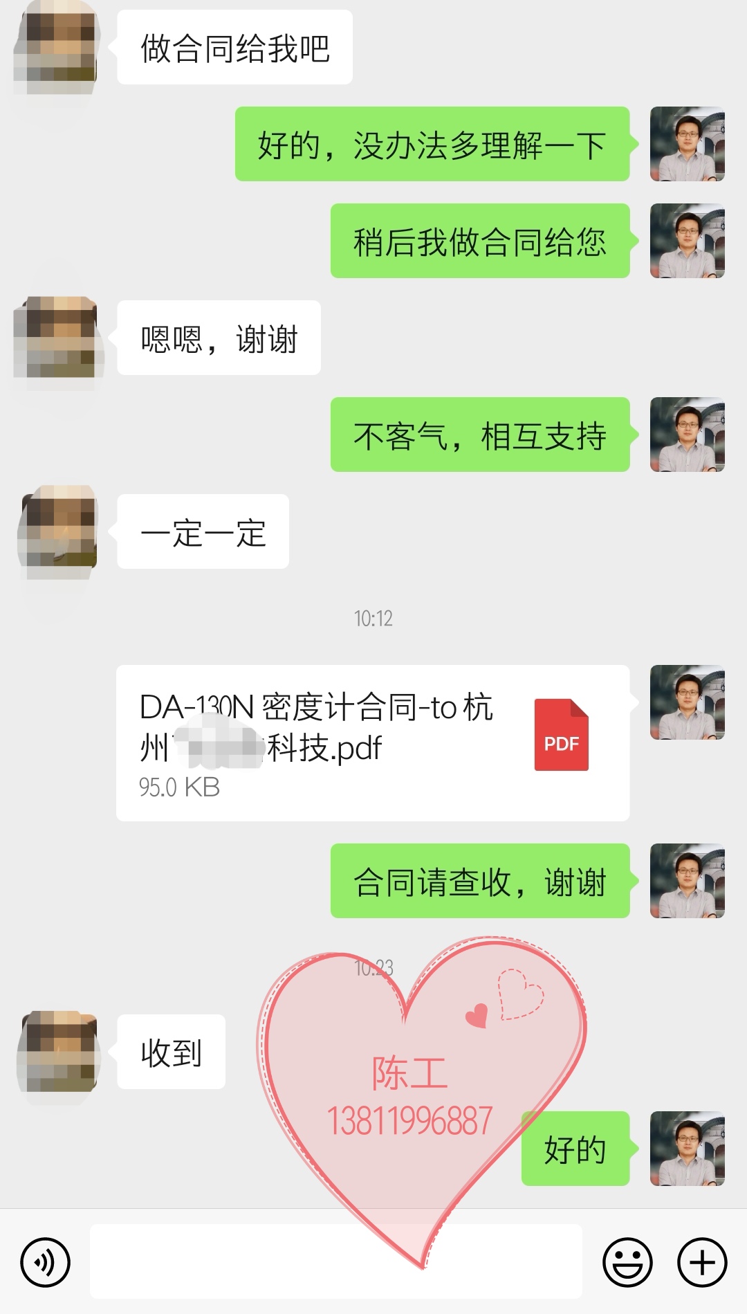今天是2023年新年開工第一天,繼一位固體密度儀的老客戶傳匯款單過來后,這位新客戶說便攜式液體密度計(jì)DA-130N做合同給我吧。