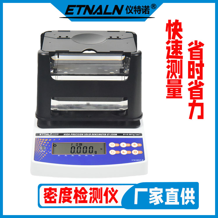 不同型號(hào)的密度計(jì)有效位也有所不同,如ET-120S、ET-220S密度有效位為 0.0001g/cm3,ET-320、ET-600、ET-320M、ET-1200 密度有效位為 0.001 g/cm3。